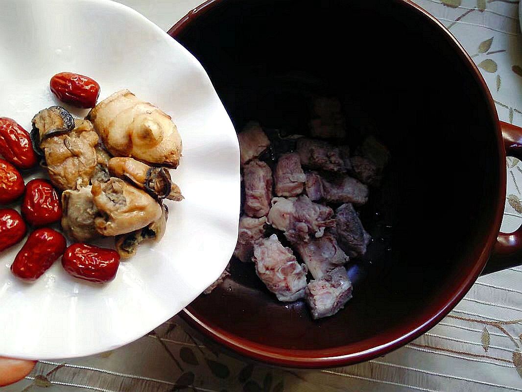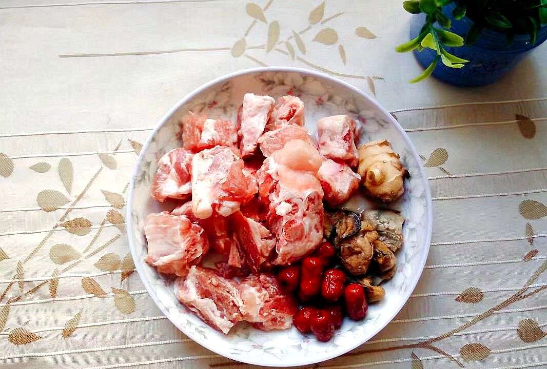 1.盘算好胡萝卜和玉米,排骨切块,盘算红枣,姜和蚝豉