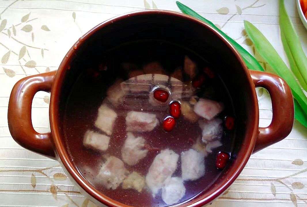 4.把焯水后的排骨放入砂锅