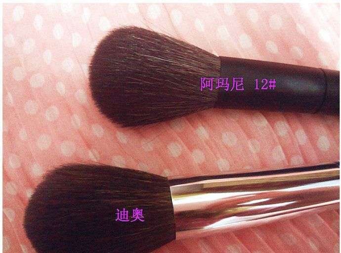 阿玛尼的刷毛小点,迪奥的毛密一点,毛比阿玛尼柔软点,但两把刷子的抓粉力差不多。