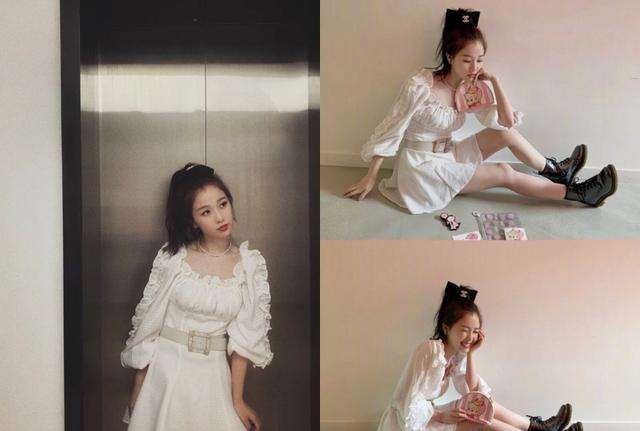 今年超流行的法式少女感穿搭被虞书欣完美演绎出了,法式搭配最经典的地方就在于袖子和领口微微的花边,其实这个连衣裙的下半部分比较平淡,但是因为虞书欣搭了一条宽边的方扣腰带,就显得很特别了,整个人看起来仙气极了,领口的设计露出精致的锁骨,搭配一条珍珠项链显得不会那么空,脚下一双百搭黑色中帮马丁靴和整体的白色相撞,经典而复古的法式风就出来啦。