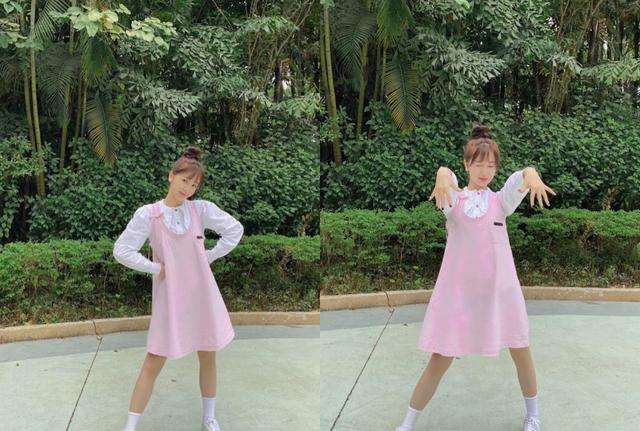 这套穿搭超级显白有没有!感觉欣欣子在阳光下都快透明了,所以划重点啦姐妹们!夏天穿这种粉白搭配,一定让你在阳光下白成一道光!白色的娃娃领内搭少女感十足,浅粉色的背带裙上点缀着一个小蝴蝶结,配上虞书欣的高丸子头,青春活泼气息十足。白袜加上百搭小白鞋,校园青春感呼之欲出,姐妹们这样穿让你秒变校园女神!