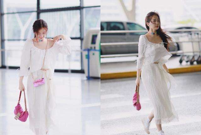 看到这套穿搭的第一反应就是一个字——仙,纱裙让虞书欣看起来仙气飘飘,一双白色的板鞋也显得她特别轻盈,可能这就是小仙女吧。虽然整个穿搭看起来都是白色的,但是一点也不单调,由于上衣是V领设计,虞书欣搭配了一条今年非常火的花朵choker,提了一个小巧的粉色包,让整体看起来一点也不单调,可以说虞书欣在细节上是下足了功夫的。