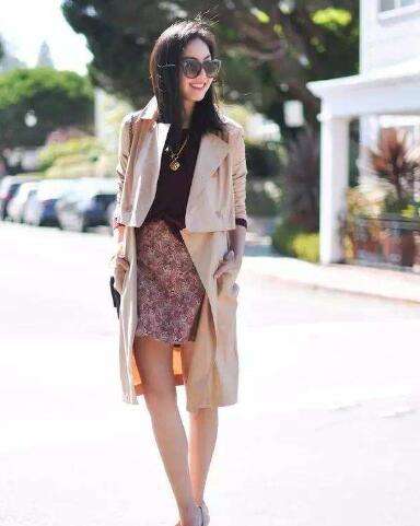 第三,铅笔裙搭配一些气场强大一点的风衣外套,至于内搭可以随意一点。因为这种铅笔裙的款式比较的修身一点,搭配一个气场强大的风衣外套,可以让女生的身材优势完美的表现出来,对于一些职场女性来说,这样的服装搭配是非常适合她们的。