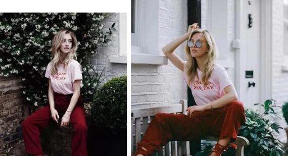 粉色和红色属于同一色系,或者也可以说是相近色。这样两个相近的色搭配在一起,看起来非常和谐也很抓人眼球。其实这个方法适用于任何一种颜色,不管什么颜色,如果你不知道怎么搭配了,这个时候只要选择同色系搭配就绝对不会出错。同色系搭配不仅可以增强造型的整体感与质感,还可以在视觉上拉长身型,显高又显瘦。