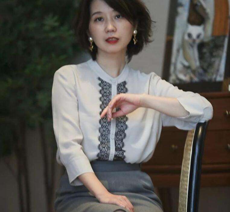 除了连衣裙,衬衫也是一款特别适合熟龄女性选择的单品,但是衬衫的选择也有讲究,40岁的女性更适合简约气质风的穿搭,所以衬衫的款式也尽量选择简单款,就像这款衬衫,古瓷色看起来清新而不失气质,立领的设计干净又利落,上面蕾丝花边的点缀古典又高雅。搭配一条灰色直筒半身裙,穿出优雅知性范,看起来也会特别的端庄得体。