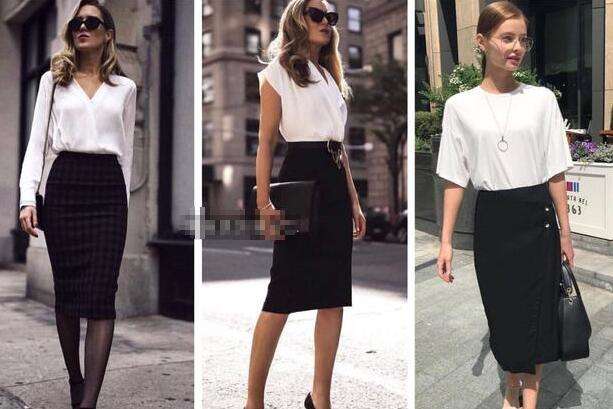 一步裙也是职场中很重要的单品之一,正式场合选择搭配白色上衣,脚踩高跟鞋干练有气质;如果想减少正式感换成白色T恤,简单不失职业感的同时又能很好的演绎职场简单利落的穿衣态度。