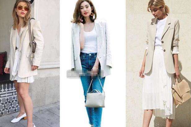 西服外套也是职场女性离不开的基础款单品,搭配上也不像之前那么单调沉闷了,当下这个季节搭配短裤,露出大美腿,让你游走在随性和正式之间这个夏天时髦的不费力;搭配裙子时髦度倍增的同时还能提升造型的质感