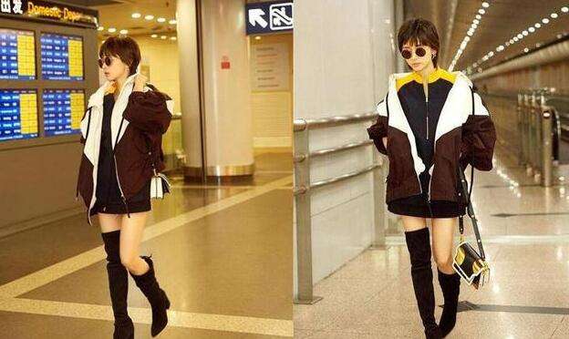 王子文的这一组机场街拍LOOK,绝对是“娘man”穿搭的典范。个性十足的焦糖色棉服是今年的大热颜色,内搭拼接连衣裙,时尚满格,就连过膝黑色长靴也玩起了花样,不规则穿法,让双腿更加性感诱人。