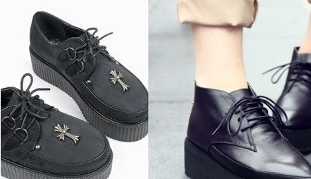 松糕鞋的一大特点就是它的鞋底形状:呈糕状。这一大特点无疑吸引了众多女性的关注。松糕鞋的款式十分多样,比较常见的款式是下图所示的这种:左边这款是绒面的松糕鞋,绒面松糕鞋的特点是穿起来相对比较轻盈,上脚的舒适度也是十分不错的。而右边这款皮面松糕鞋就相对稍微显得厚重一点了,不过这款鞋子是比较百搭的,所以比较适合大多数人。