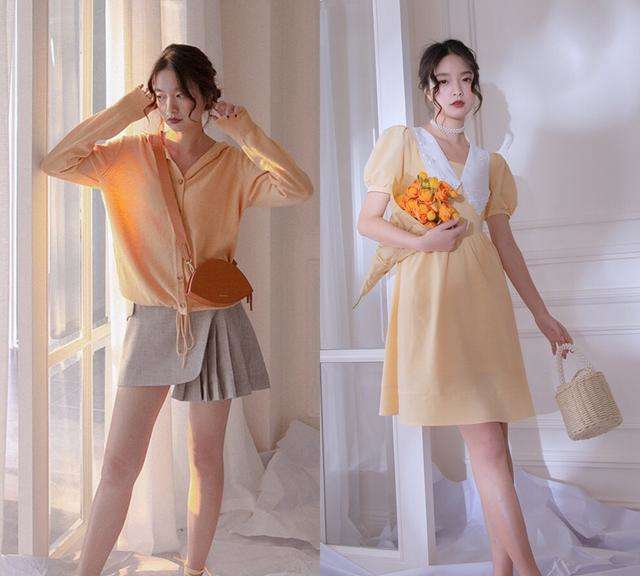 小个子女人穿裙子,一定要和裤子的长度相匹配起来,在膝盖以上的裙子穿在身上,双腿露出来,这样的搭配才更有活力,也更能显高。黄色的色彩明快又活泼,留给人印象深刻。