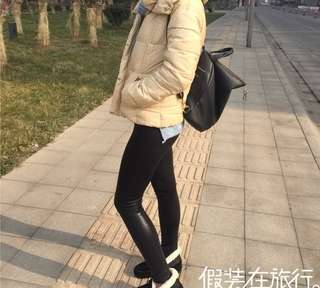 韩国lets diet半哑光皮裤。找代购买的,158块。虽然没有提臀瘦腿功能,但穿起来不显胖。半哑光面料好搭配,皮裤弹性好,行动非常自如,微绒,这个天气穿刚好,保暖性不错。穿的时候注意不要用护手霜,哈哈,不然会在裤子上留下手印。