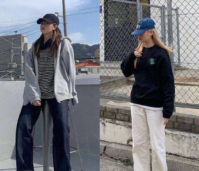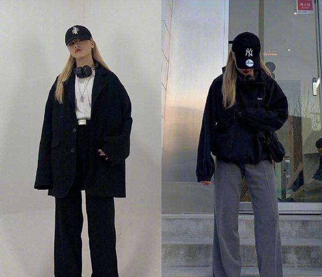 不同于紧身的穿搭,宽松的搭配体现的是整体的阔感美和搭配美,还有点小帅气和随性美。同时,可以佩戴一款鸭舌帽,更多单品的修饰会让整体变得非常符合时尚潮流。