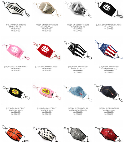 以下截图中的产品价格与款式为全部的在售口罩资料 ,根据自己喜欢 的款与价格选择吧!