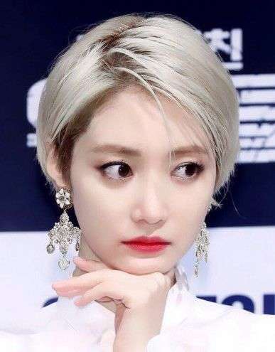 斜分散乱的刘海对脸型还是有很大的挑战性,以安妮海瑟薇为首的椭圆形脸蛋才好驾驭这款发型。我们高俊熙也是这个脸型,对应这款短发。