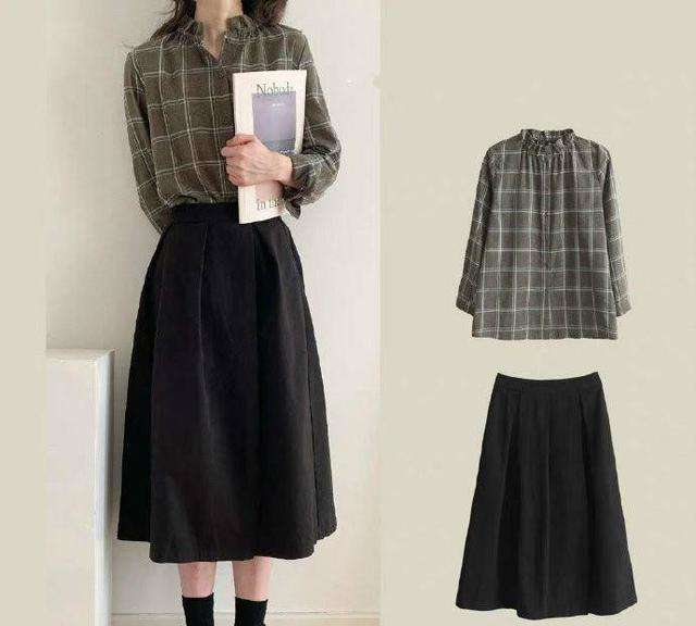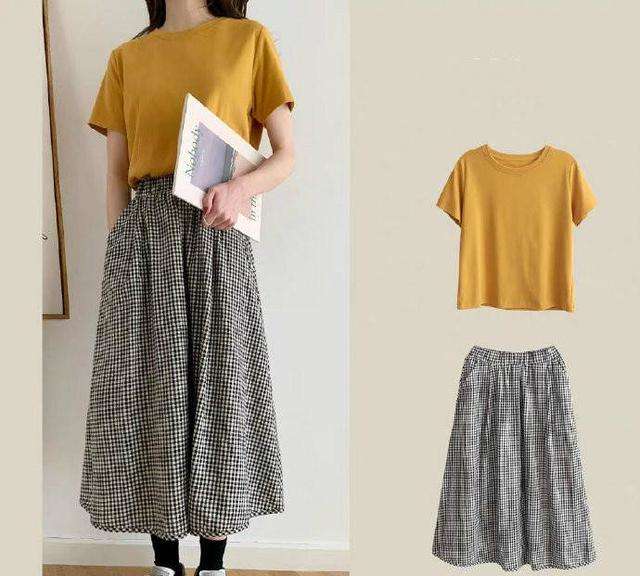 同碎花一样,格子的设计也是偏文艺清新风格的,只是在选择上,尽量选择这种排列规整,较为细密的格子,更富文艺气息,排列不规整而且格纹较粗的半身裙更能显示出强大的气场,所以想要打造文艺范,选择这种就是没有多大问题的,搭配亮色的上衣,更显青春文艺。