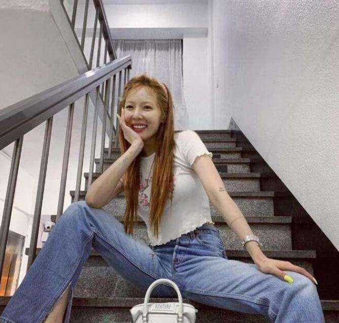 柠檬黄露脐运动背心搭配及地长度的浅蓝阔腿裤。身材比例更加的完美,突出了双腿的线条,显得泫雅整体性感艳丽而不俗,散发一种马儿一般放荡不羁的野性美。