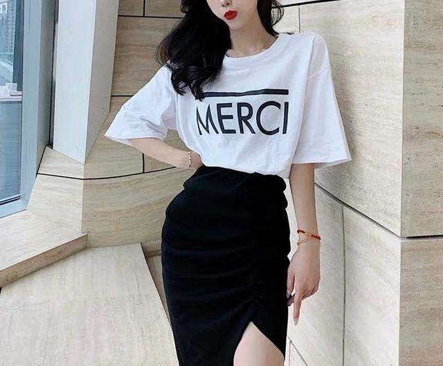 说到T恤很多人的印象就是休闲,其实不然跟不同的单品搭配,T恤展现的气质也是不一样。半身裙的气质就比较女性温柔,T恤跟半身裙在一起两者就会中和,变得大方得体,恰到刚好的气质,搭配一双高跟鞋或者单鞋你可以自信走进职场,搭配一双帆布鞋你可以自信的逛街走进校园。
