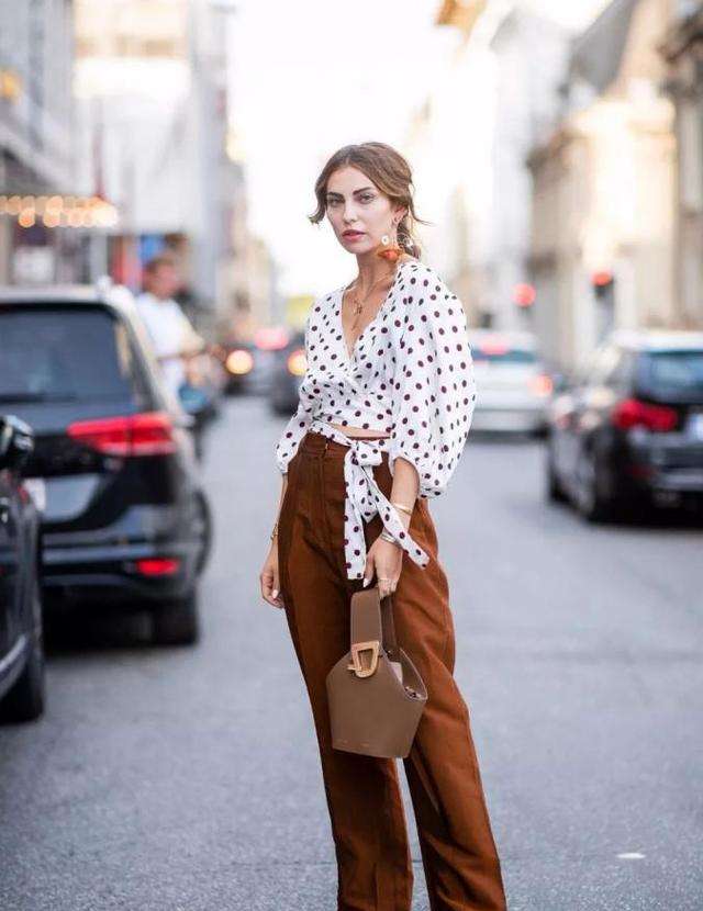 波点是一个很百搭的花纹,想要出彩就要把细节做好。白底大的黑波点的经典,不管什么场合都不会容易出错,复古、高级。如果想要走文艺小清新路线,白底红波点最合适不过了,再搭配一条简单的牛仔裤,就是心动的感觉啦!
