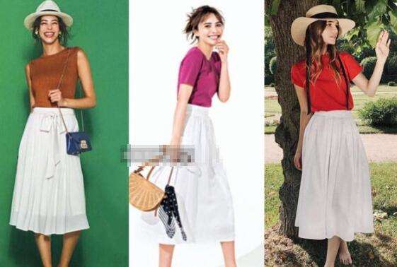 亮色单品最具吸睛,夏天穿配白色最适合,不仅可以弱化亮色的炸眼感还能穿出明媚清澈的气质;肤色不完美的姑娘们可以选择经典百搭且不挑肤色的黑白色上衣配亮色半身裙,把不好驾驭的颜色放置到下半身,离脸部区域远了就不用担心降低肤色的困扰了。