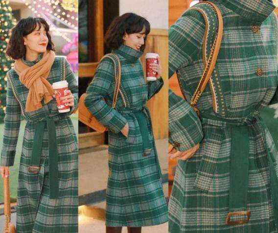 绿色也具有浓浓的圣诞气氛,良众人正在圣诞的时分都邑选取带有绿色或者血色元素的穿搭。下面这件大衣就很细致况且很“圣诞”,给人浸稳大气的觉得,金属的扣子和肩上的打算都很绝,显得很高级,腰带也是高腰的打算,集体的斑纹足够雄厚,其它配饰尽或许容易就行,踏上棕色的长靴再系上棕色的领巾,你便是一个行走的圣诞树。