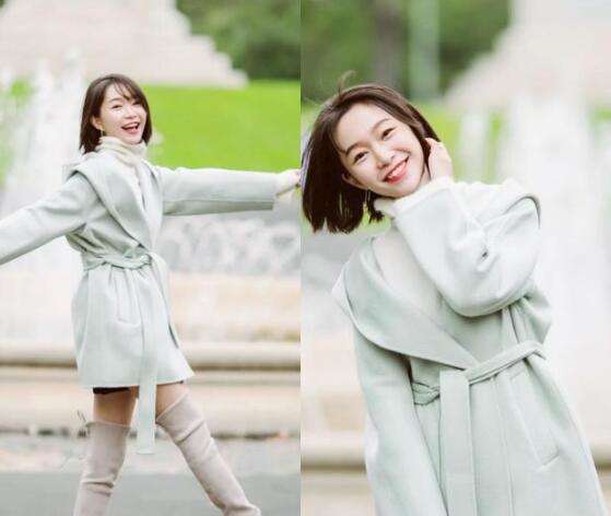 薄荷绿就更显年青了,给人如沐东风般的优美,短款更适合小个子,这种连帽的浴袍打算很适合小个子,很适合影相,洞开会显得很斯文,带有腰带,系上会显高,穿法对照众样,搭配了温和的白色毛衣和灰色的过膝靴,很大度。正在凛凛的秋冬给人明晰的觉得。
