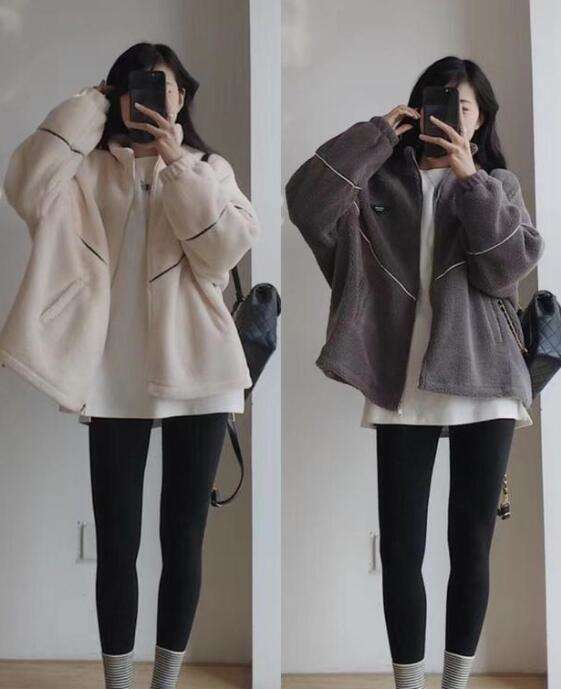 摇粒绒的外衣,看起来比拟厚实,也好坏常容易穿出丰腴感的打扮。但只须咱们搭配妥善,如故会避免这种丰腴污秽的感到的。如许的穿搭小手段,也是异常的应用。宽松的摇粒绒外衣,穿起来异常的文雅保暖。搭配一条玄色修身打底裤,穿起来自然点缀腿型,完好的展呈现高挑的身形比例。如许的穿搭恶果,甜蜜又显高。