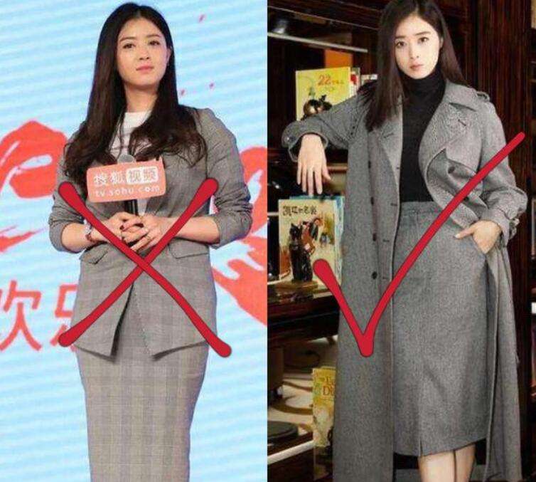 关于梨型身体的女性而言,假若非要硬把己方塞进紧身的衣服里,那无疑便是正在告诉别人己方身上的差错是什么。好的衣品是一个不停完竣、自我修炼的流程,是以不要感到少少模特,时尚达人穿戴很体面己方就一股脑地盲目随同,要依据己方的实践情景来实行归纳剖释再做出判别。好比以下穿搭效益对照:左图的蒋欣穿了一套呢子西装,下半身是一件包臀半身裙,紧身的格局把她宽胯粗腿的线条弧线毫无保存地显现了出来,给人一种很强壮的感应,没有美感可言;再来看右图中的搭配,也是穿了一身毛呢西装款,此次的半身裙拣选了直筒的版型,笔直干净的计划让全数人看起来又美又飒。并且也不消顾虑两侧会外露腿粗胯宽的形势,身体看起来纤细很众,视觉显瘦10斤不是梦。
