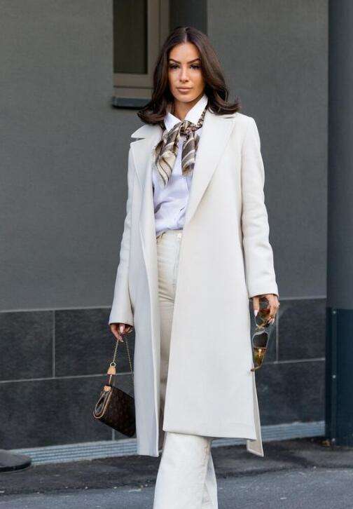 风衣与衬衣的组合,早便是一种经典的穿搭了。但奈何运用这种经典的穿搭,发现出尤其摩登高级的气质,才是值得咱们进修的。念要气质高级大方的话,能够拔取少许修身又简约的大衣版型。譬喻说厚实的风衣面料,穿起来更有挺括性。这件米白色风衣,过膝的长度文雅大方,搭配了爽利的白衬衣,更显得高级考究。