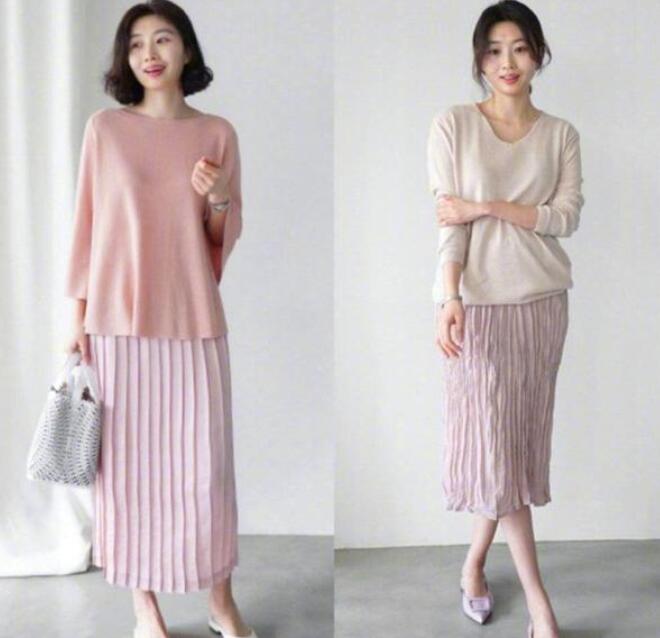 针织衫与半身裙的组合,也是对照常睹的穿搭look。当咱们选拔针织衫与半身裙的搭配的期间,应当尽量选拔极少淡色系。真相轻柔的色系,更容易凸显女性的和气气质。像裸粉色,或者米白色,都是对照容易掌握的颜色。可能衬得肌肤愈加白净,也愈加难显嫩减龄。搭配了淡紫色百褶裙,更显得温婉大方。