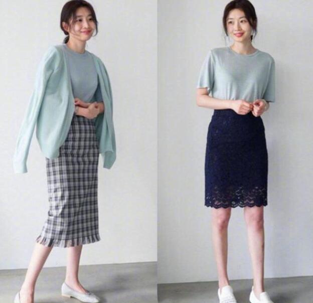 半身裙的选拔也是众种众样的,除了格纹半身裙以外,咱们还可能选拔蕾丝的半身裙。相对而言,蕾丝半身裙更容易凸显女性魅力,穿起来也是愈加高级爽利的搭配。像这种修身的蕾丝半身裙,更适合极少身体比例优异的女人衣着,搭配蓝色的针织衫,知性而温婉。冬天穿半身裙怎么搭配