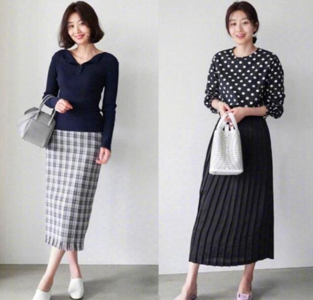 当然除了极少淡色系的半身裙可能选拔以外,咱们还可能选拔深色系的半身裙。相关于淡色系的清爽,深色系视觉上会愈加爽朗极少。明星穿着玄色系的百褶裙,特地的温婉昂贵。格纹的半身裙,也是很容易凸显女性气质的。搭配了藏蓝色针织衫,爽利温婉不失大方气质。