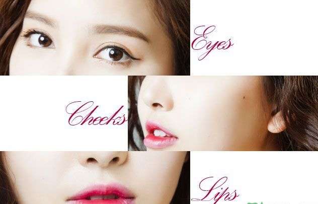 先擦粉红唇膏,接着正在唇中央再叠擦赤色唇釉,并以指腹轻拍,稍微调和唇釉和唇膏的界线。